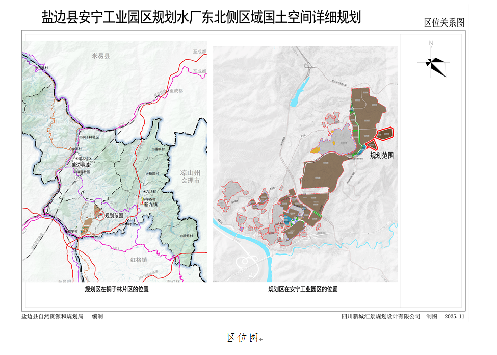 本次规划范围位于盐边县安宁工业园区规划水厂东北侧区域,属于安宁工业园区重点发展单元;《攀枝花市盐边县桐子林片区国土空间总体规划(2021-2035年)》已获批,但盐边县安宁工业园区详细规划仍在编制过程中,为强化国土空间规划的管控与引导作用、推进土地集约节约利用、保障项目建设依法依规实施,依据《中华人民共和国城乡规划法》《四川省城乡规划条例》等法律法规及《四川省城镇详细规划编制指南(征求意见稿)》等技术规范,特组织编制《盐边县安宁工业园区规划水厂东北侧区域国土空间详细规划》(以下称《规划》)。现按程序对《规划》进行公示。