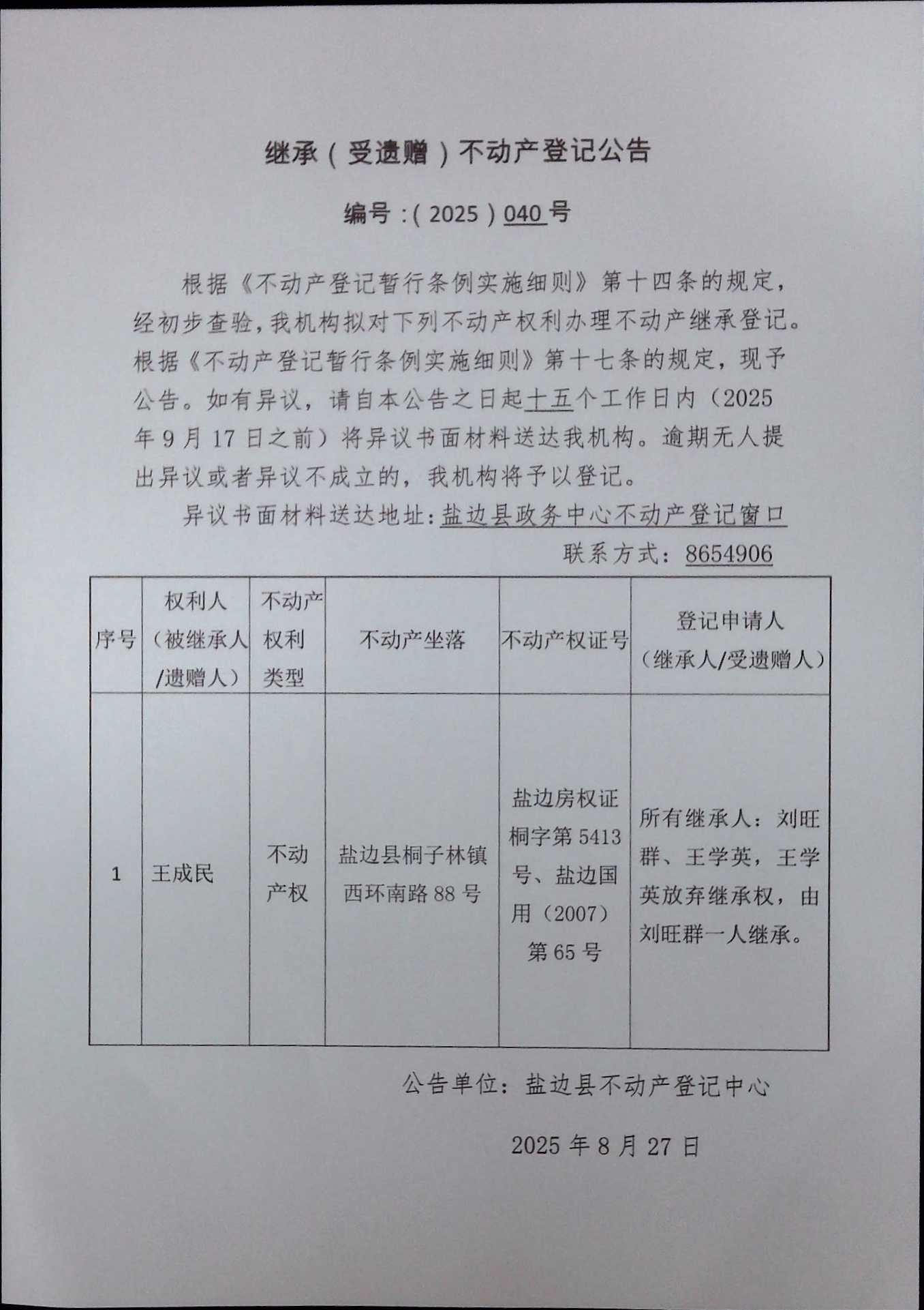 发布时间:2025-08-27 来源:盐边县不动产登记中心 选择阅读字号:[