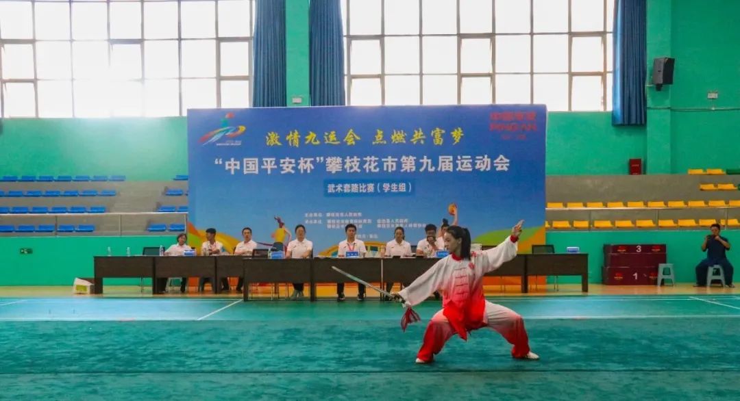 9月22-24日,“中国平安杯”攀枝花市第九届运动会武术套路(学生组)比赛在盐边县综合健身馆举行。来自全市各县(区)小学组6支代表队、初中组4支代表队、高中组4支代表队共156名选手参加比赛。