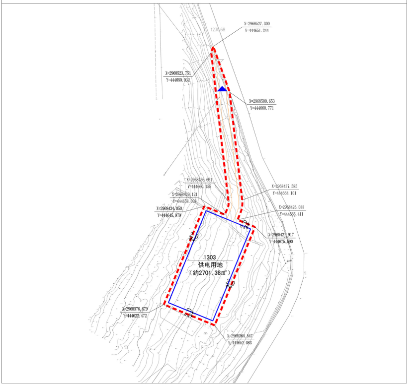论证后地块编码为HMMZ-01-001,用地面积为0.2701公顷,用地代码1303(供电用地),容积率≤0.3,建筑密度≤40%,建筑限高≤15米,开口方向:北。