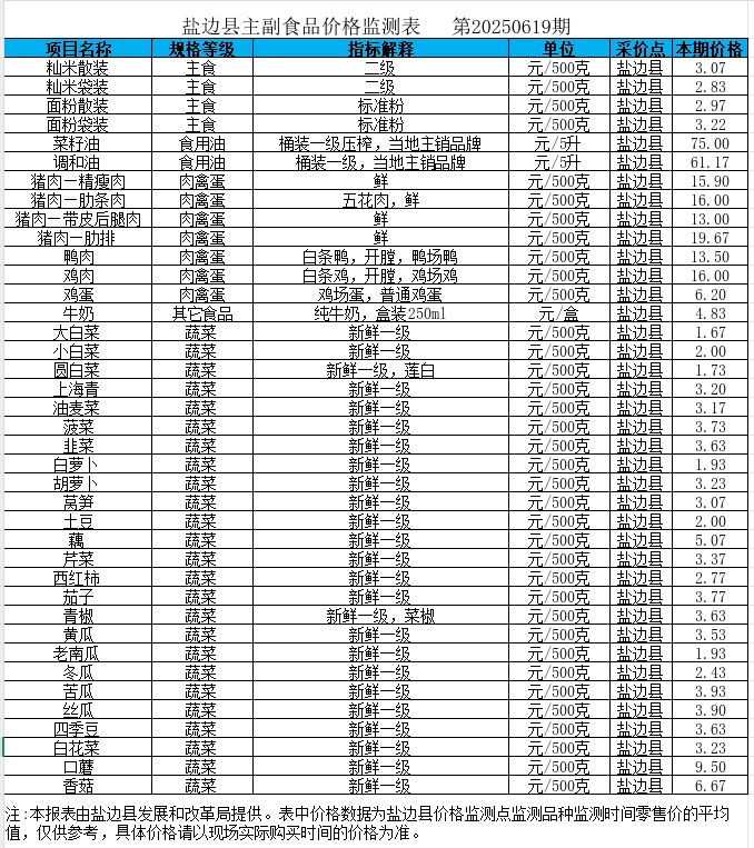 盐边县主副食品价格监测表(第20250619期)