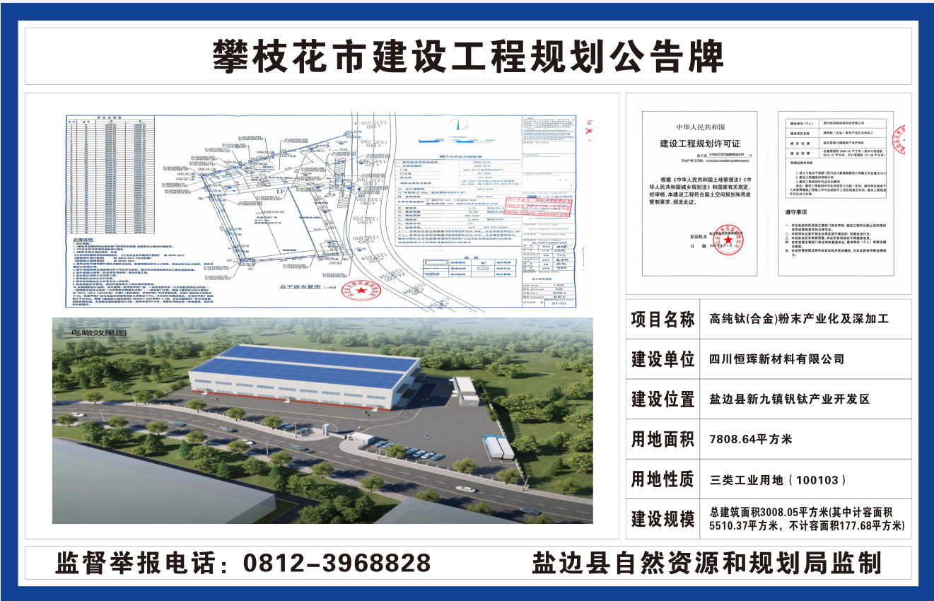 高纯钛(合金)粉末产业化及深加工建设工程规划许可及方案设计总平面图批后公布