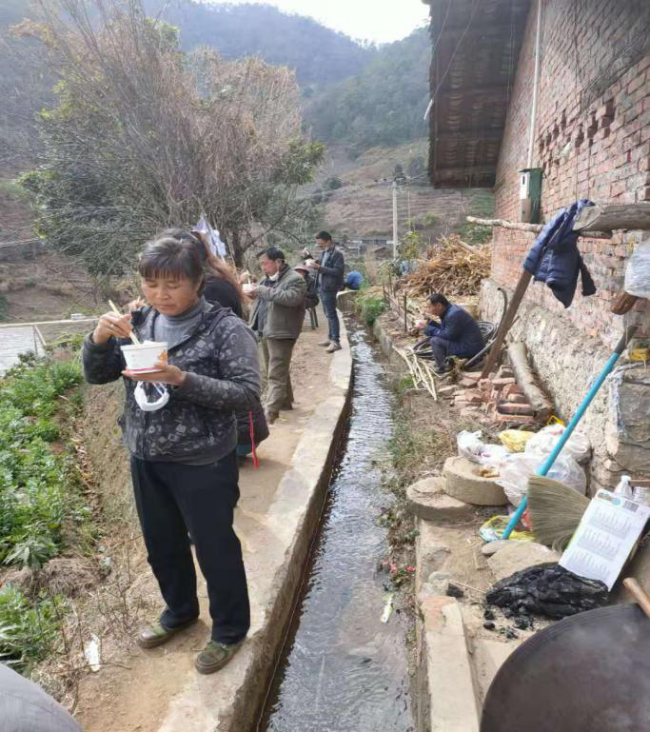 当日,该户立即对丧事进行了从简办理。按照要求,帮忙人员均为自家近亲属,人数30余人,丧事办理全程期间,所有帮忙人员均佩戴好了口罩;就餐时刻,部分人员自行回家吃饭,部分人员自带一次性餐具、分时段打餐吃饭,做到了没有人集中吃饭。