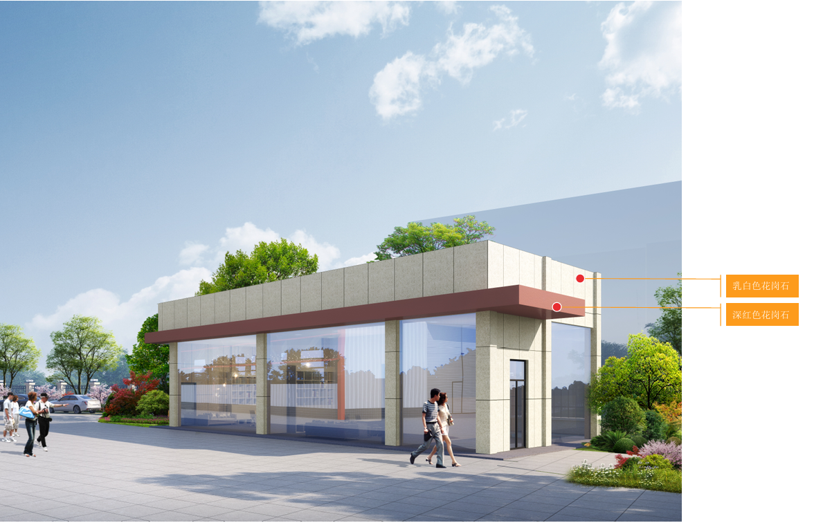 (一)为切实保障项目后期使用安全,拟将办公楼一外墙原设计采用湿贴芝麻灰600*600花岗石、深红色600*600花岗石,变更为泉州白真石漆;外墙立面整块玻璃造型增加隔断;取消室外楼梯。