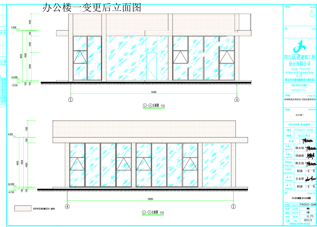(二)办公楼二原设计方案中,门与窗之间设有一道200厚砖隔墙,为保障现场施工安全将该200厚砖隔墙变更为门带窗形式;外墙砖采用60*60深红色外墙砖调整为60*60橘红色外墙砖。