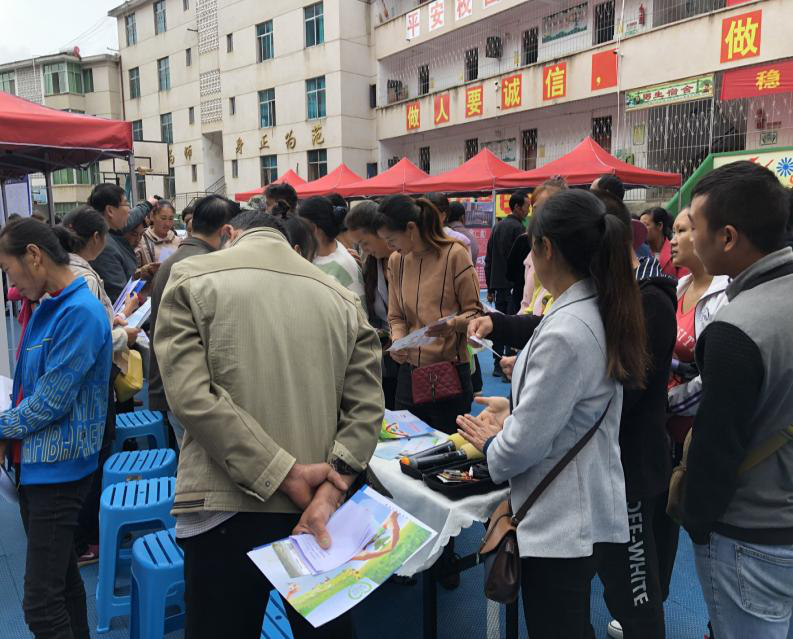 10月17日是第七个全国扶贫日。为贯彻落实习近平总书记关于决战决胜脱贫攻坚的重要指示精神和省市县相关工作部署,全国扶贫日当天,由县人社局、县扶贫开发局、县就业创业促进中心及惠民镇人民政府主办,攀枝花市攀花园职业技能培训学校承办,组织四川龙蟒矿冶有限责任有限公司、攀枝花一立钒钛有限公司等52家企业在惠民镇中心小学开展就业扶贫行动日专场招聘活动和政策宣传活动。